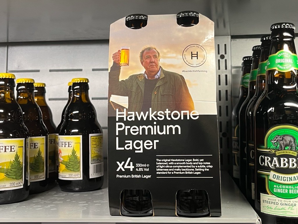 We're launching with 4-packs of our British-farmed and made Hawkstone Premium to start with. So, be on the lookout for Jeremy's face the next time you're in the beer aisle. And don't forget to pick up some snacks while you're there.