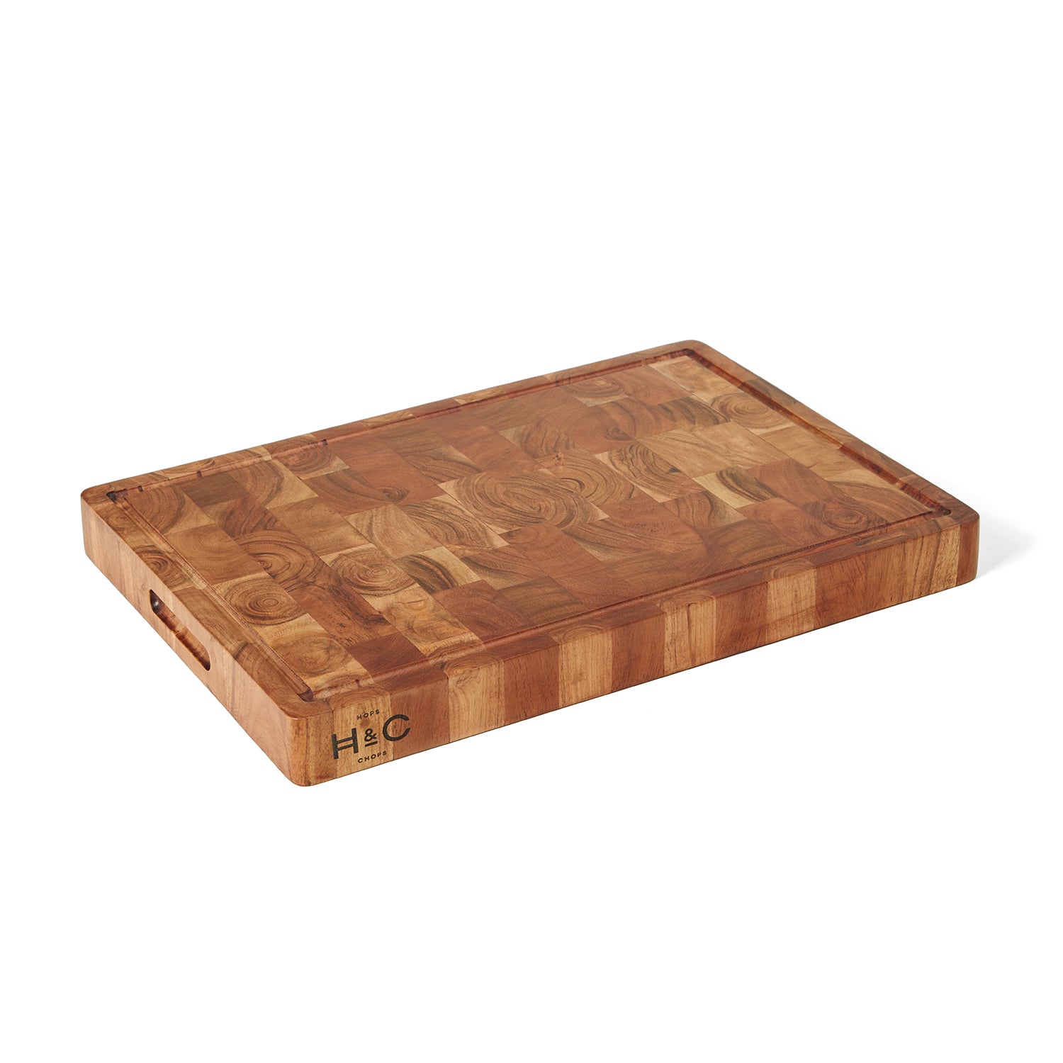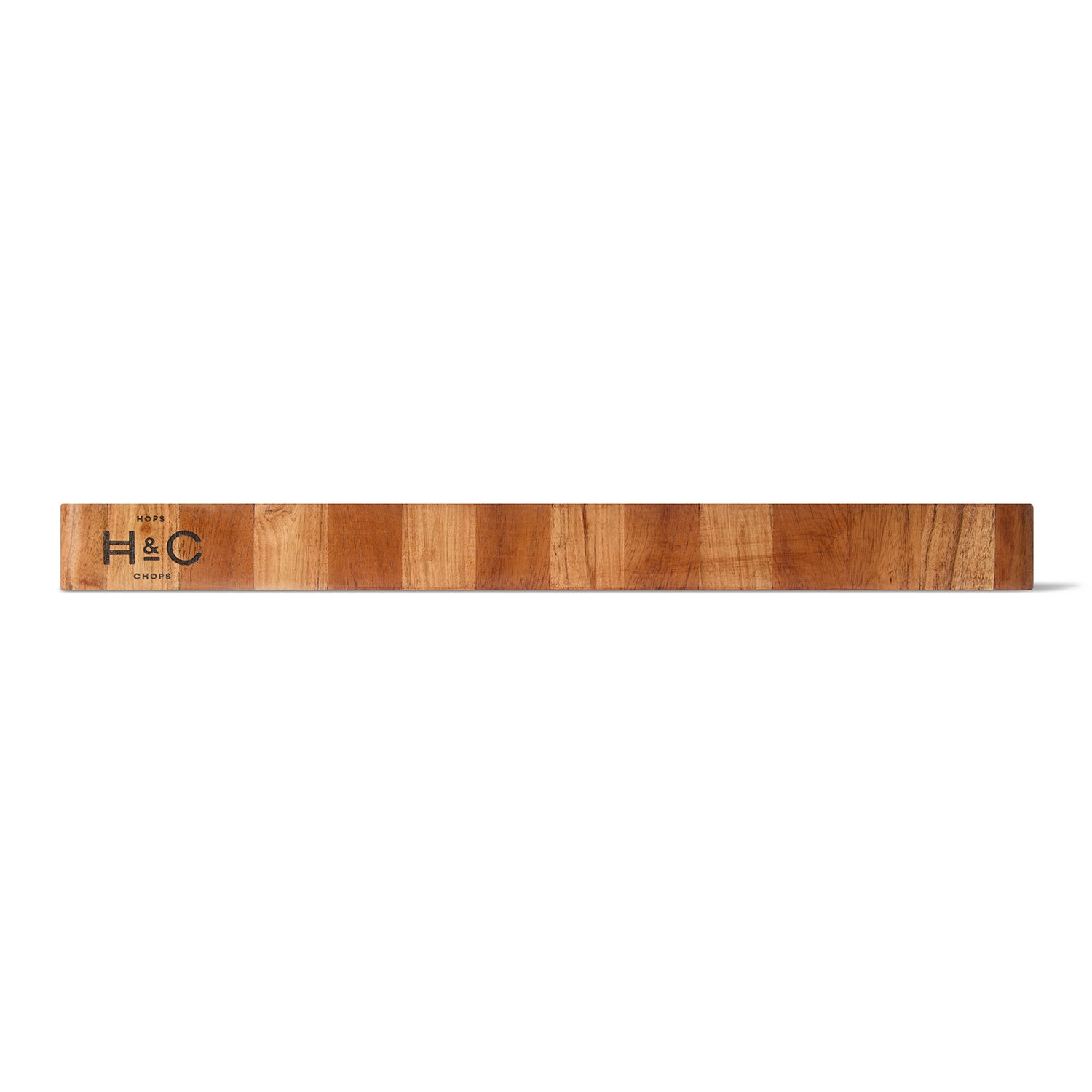 Unleash your inner chef with the official Hops & Chops butcher’s block. Made from acacia wood with a durable end-grain design, it stands up to the sharpest knives while looking stunning on your counter. The end-grain construction not only lasts longer but also naturally hides cuts, keeping your block looking great for years. Robust, stylish, and unmistakably Hops & Chops. Features: 50 x 35 x 4.5 cm Made in...